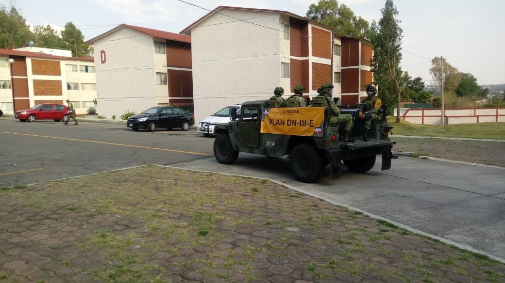 Tlaxcala,Tlax.-La Secretaría de la Defensa Nacional (Sedena) a través de la 23 Zona Militar realiza labores de patrullaje y perifoneo en calles de la entidad para invitar a la población a permanecer en casa y evitar la propagación de Covid-19.