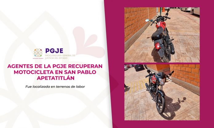 AGENTES DE LA PGJE RECUPERAN MOTOCICLETA EN SAN PABLO APETATITLÁN