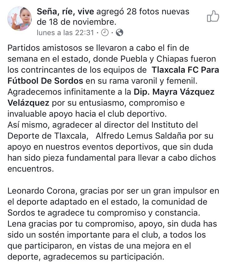 Tlaxcala, Tlax.-A través de sus diferentes redes sociales integrantes de la comunidad sorda del Estado agradecieron a la Diputada Mayra Vázquez Velázquez su apoyo y compromiso con este sector.