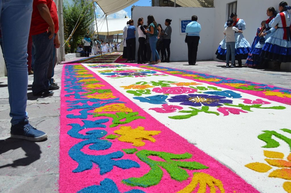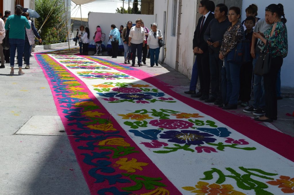 Al concluir con el cambio de la vestimenta de la Virgen, la imagen de María Santísima es llevada en hombros del párroco y por el excelentísimo señor Obispo de Tlaxcala, en una pequeña procesión que se efectúa a un costado de la Basílica, donde es confeccionado un tapete de aserrín multicolor, para colocarla a la vista de los huamantlecos, concluyendo con una celebración eucarística.