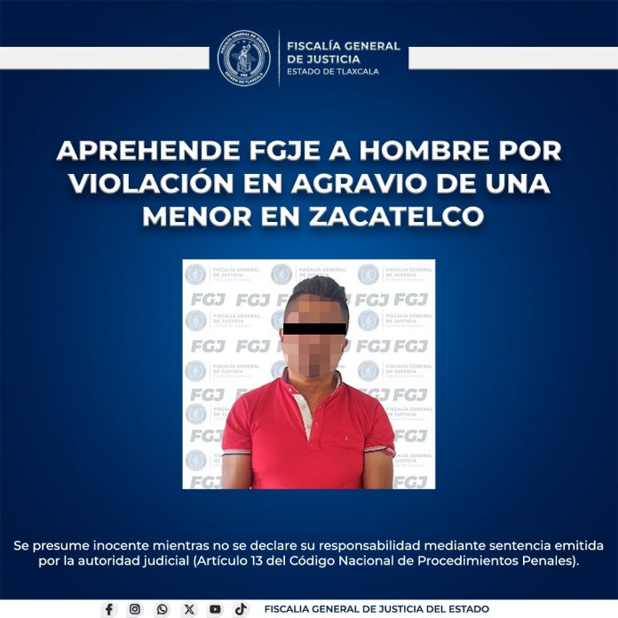 Aprehende FGJE a hombre por violación en agravio de una menor en Zacatelco