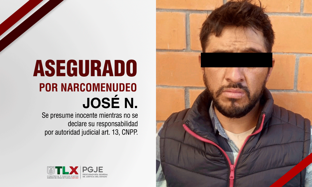 Por lo que al estar ante un delito flagrante, la persona quien dijo llamarse José N., de 31 años de edad, fue asegurada y puesta a disposición del Agente del Ministerio Público por delitos contra la salud en su modalidad de narcomenudeo.