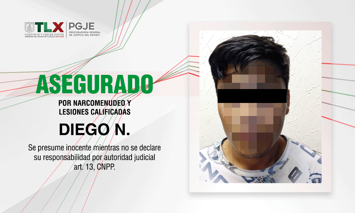 Por lo que al estar ante un delito flagrante, la persona que dijo llamarse Diego N., de 24 años de edad, fue asegurada y puesta a disposición del Agente del Ministerio Público por delitos contra la salud en su modalidad de narcomenudeo.