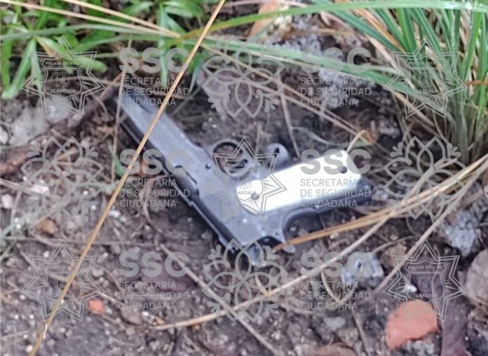 El personal que realizaban recorrido de seguridad y vigilancia, detectó sobre vía corta Chiautempan en límites de una barranca un objeto con las características de un arma de fuego.