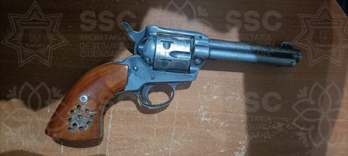 Zacatelco,Tlax. -Derivado del reporte emitido por el Servicio de Emergencias 911, elementos de la Dirección Operativa, comisaría Zacatelco, pertenecientes a la Secretaría de Seguridad Ciudadana (SSC), arribaron a la carretera de Manantiales con dirección a “Val’Quirico”, colonia Domingo Arenas, tras ser informados que, en el lugar, una persona localizó en terrenos de labor un arma de fuego.