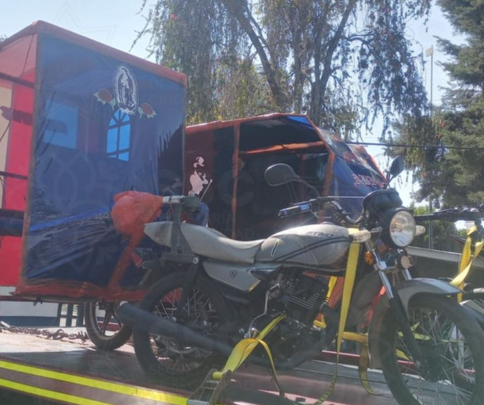 Se trata de Miguel Ángel N. de 44 años y Cristian N., de 27 años; así como una motocicleta, marca Italika y una motocicleta sin marca. Ambas unidades sin placas de circulación, acopladas con una estructura metálica con asientos en su interior y usadas para transporte público.