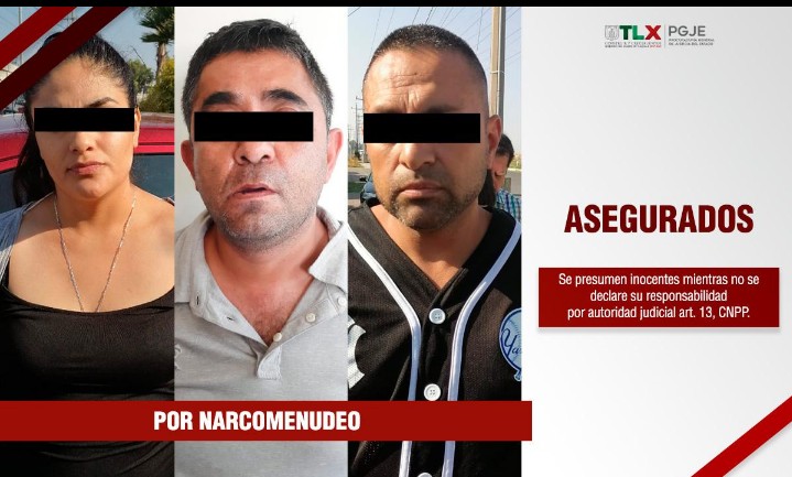 Tlaxcala,Tlax.-En una acción conjunta entre oficiales de la Policía de Investigación adscritos a la Procuraduría General de Justicia del Estado (PGJE) y elementos de la policía municipal de Chiautempan, se logró el aseguramiento de tres personas que poseían envoltorios con sustancia granulada, característica de la droga sintética conocida como cristal.