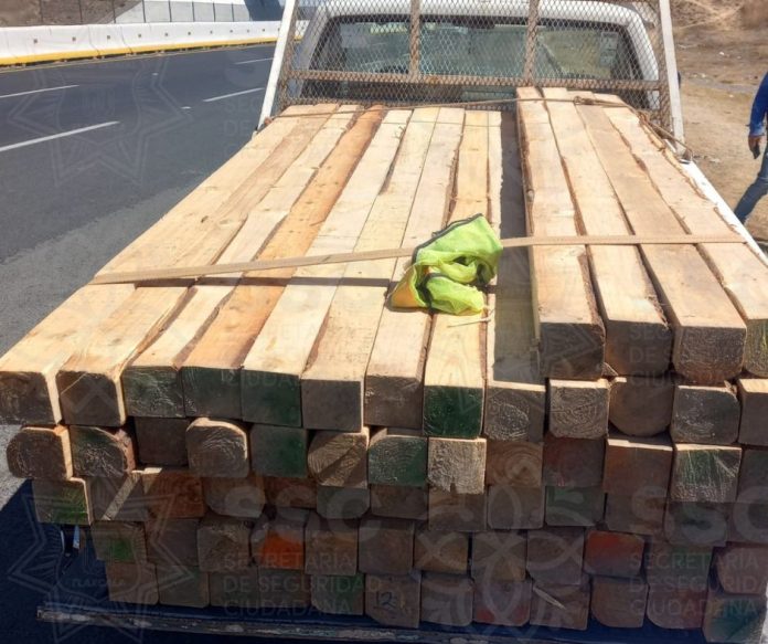 Tlaxcala, Tlax.- Elementos de la Unidad de Policía de Montaña perteneciente a la Secretaría de Seguridad Ciudadana (SSC), aseguraron este fin de semana una unidad cargada de material forestal cuando transitaba por Libramiento Tlaxcala a la altura del centro comercial “Galerías”.