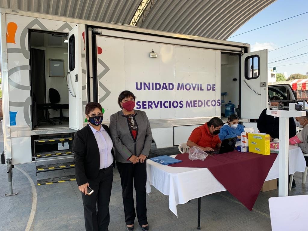 Panotla,Tlax.- La Presidenta Municipal de Panotla, Felicitas Vázquez Islas y la Directora Municipal del DIF Municipal, María Soledad Espinoza de los Monteros Hernández, presenciaron a primera hora de la mañana la instalación de la Unidad Móvil del programa estatal “Médico en tu casa” donde realizaron de manera gratuita consultas generales y dentales a la comunidad de San Jorge Tezoquipan perteneciente al Municipio de Panotla.