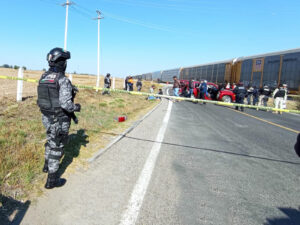 Por tratarse de un tramo federal, elementos de la Guardia Nacional se hicieron cargo del abanderamiento de la carretera; asimismo, el supervisor de Seguridad Ferroviaria refiere se hará cargo de la máquina ferroviaria con número económico 4834 con dirección al sur.