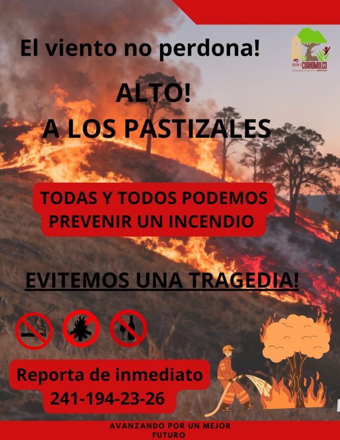 Cuaxomulco, Tlax. – Ante el riesgo que representan los incendios forestales, autoridades municipales de Cuaxomulco continúan haciendo el llamado a la ciudadanía para reforzar las medidas de prevención y actuar con responsabilidad en el manejo del fuego.