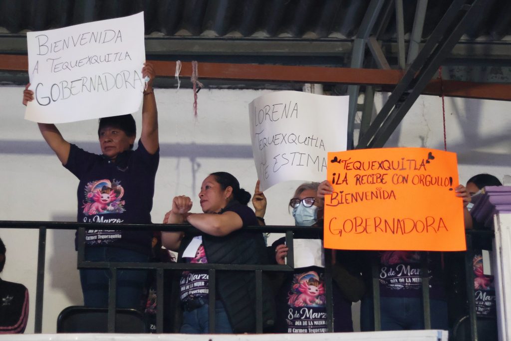 Tequexquitla, Tlax. – El Carmen Tequexquitla fue sede de un encuentro entre autoridades municipales y estatales, donde la gobernadora de Tlaxcala, Lorena Cuéllar Cisneros, visitó el municipio y sostuvo un acercamiento con habitantes, acompañada por la presidenta municipal, Araceli Martínez Cortez.