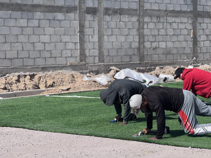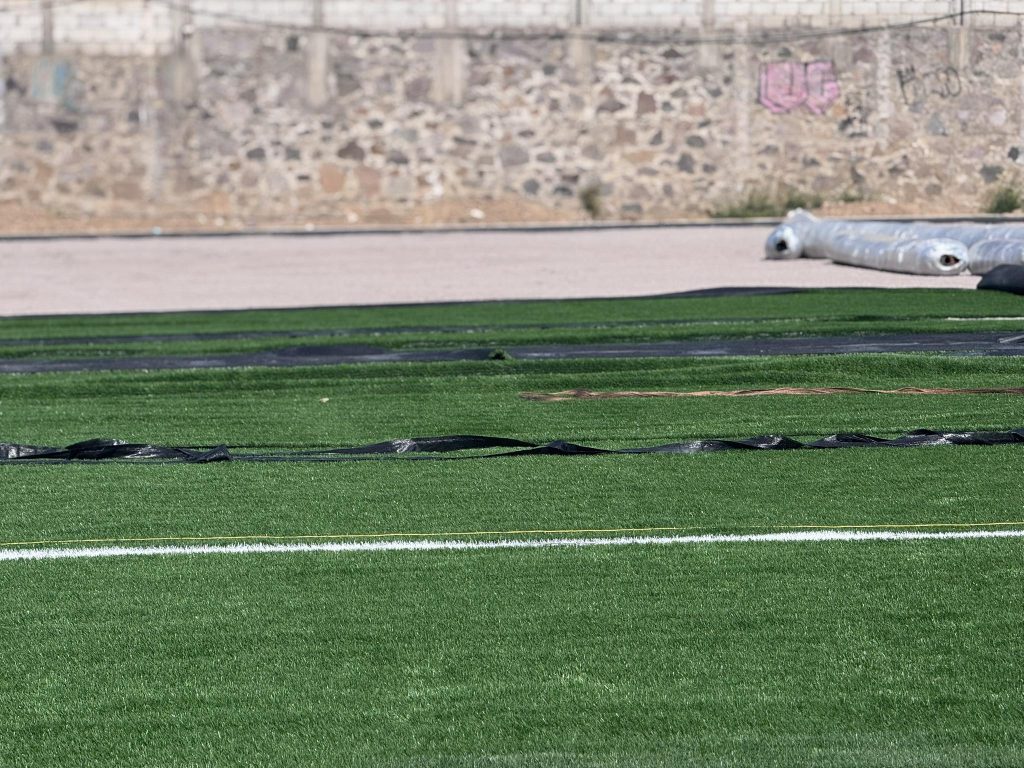 Actualmente, los trabajos se centran en la colocación del pasto sintético, una etapa clave para asegurar que la cancha cuente con una superficie moderna, resistente y adecuada para el desarrollo de actividades deportivas de alto nivel.