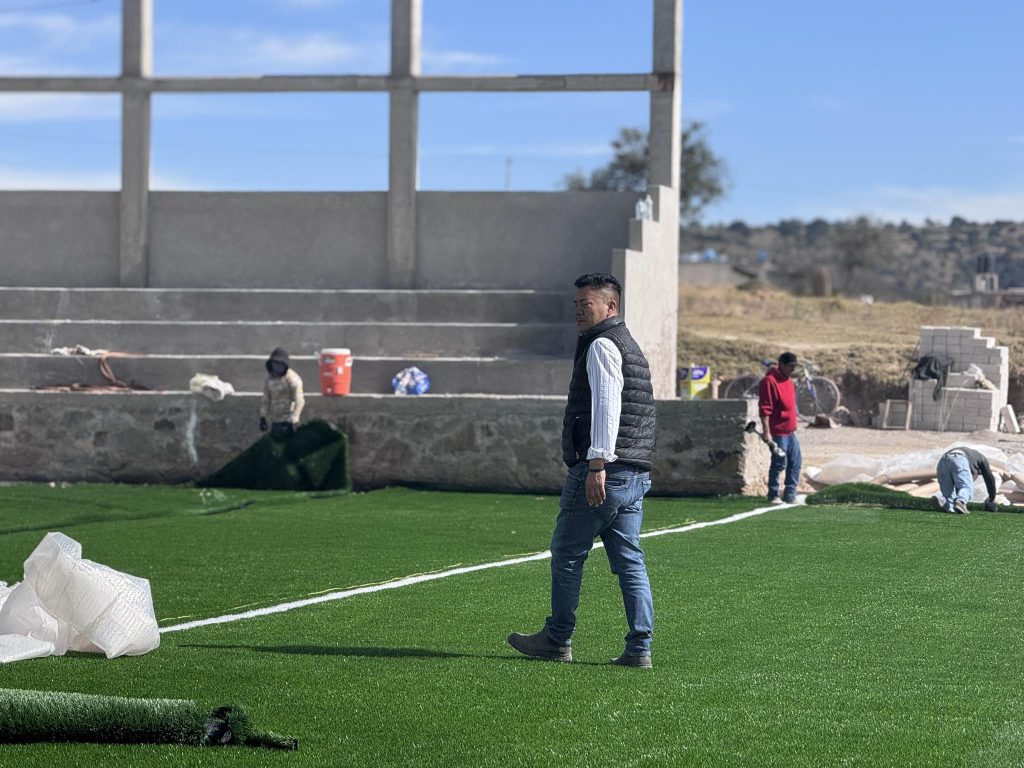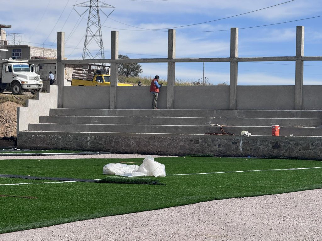 Terrenate, Tlax. – La obra del nuevo campo de fútbol soccer en Terrenate continúa registrando avances significativos como parte del proyecto del Complejo Deportivo municipal, infraestructura que busca fortalecer los espacios para la práctica del deporte y la convivencia comunitaria.