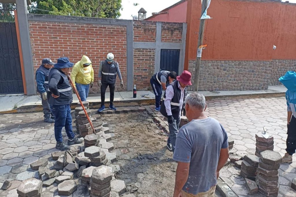 De igual forma, en la calle Retorno Nacional Poniente, en el Barrio de Miraflores de la comunidad de Ocotlán, se atendió la renivelación de adoquín afectado por las recientes lluvias, lo cual mejora las condiciones de movilidad y seguridad para los habitantes.