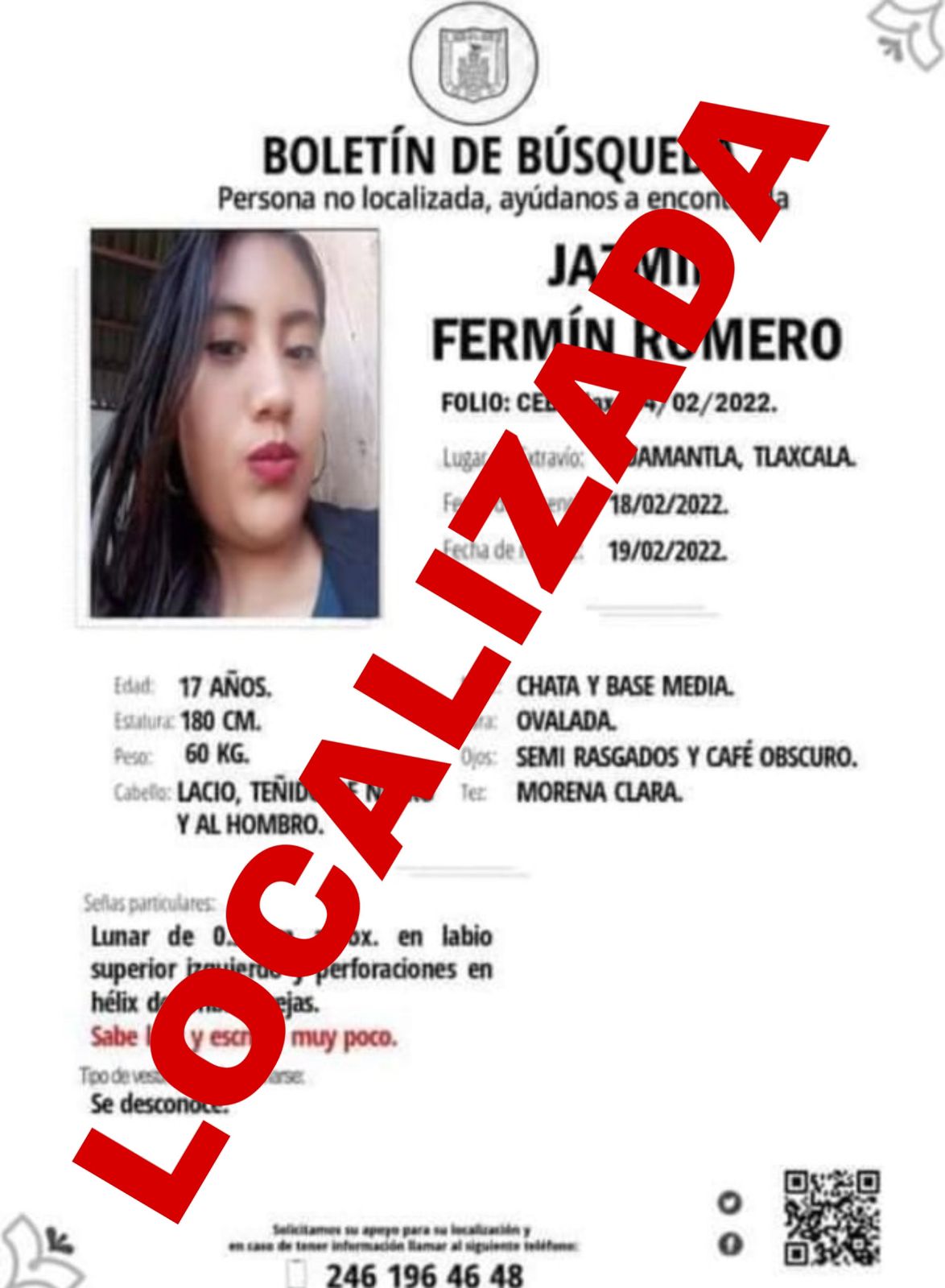 Luego de aplicar los protocolos de búsqueda de personas durante el fin de semana pasado, este día elementos de la Dirección de Seguridad Pública, Tránsito y Protección Civil de Huamantla, tuvieron conocimiento de que una menor reportada como no localizable desde el 18 de febrero ya había sido ubicada en casa de un familiar.