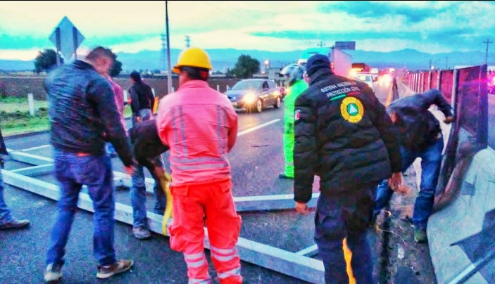 El peculiar hecho ocurrió a la altura del kilómetro 1+500 del Libramiento Oriente de ese Pueblo Mágico, donde posiblemente por el mal clima, se venció y vino abajo la señaletica que enmarca la salida al municipio de Cuapiaxtla, que alcanzó a afectar a un vehículo particular y la movilidad en ese tramo carretero.