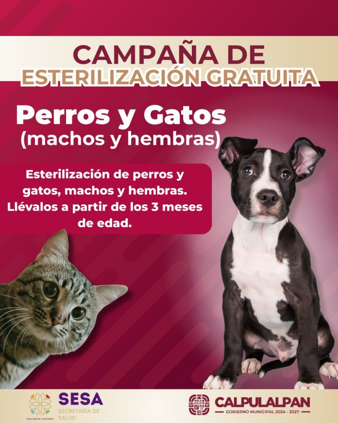 Calpulalpan, Tlax. – El Gobierno Municipal de Calpulalpan, encabezado por el presidente José Manuel Jiménez del Razo, dio a conocer la realización de una nueva Campaña de Esterilización de Perros y Gatos, la cual se llevará a cabo en coordinación con la Secretaría de Salud del Estado de Tlaxcala y el Centro Veterinario Antirrábico.