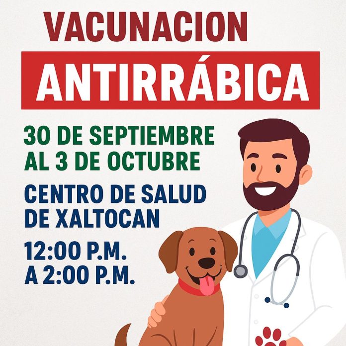 Xaltocan, Tlax. – El municipio de Xaltocan anunció el arranque de la Campaña de Vacunación Antirrábica, con el propósito de reforzar las acciones de salud pública y garantizar el bienestar tanto de las mascotas como de las familias. La jornada es organizada por el Ayuntamiento que encabeza el presidente municipal José Luis Hernández Vázquez, en coordinación con el regidor de salud y el Centro de Salud de la demarcación.
