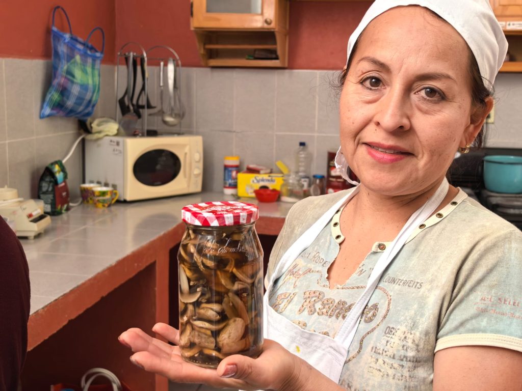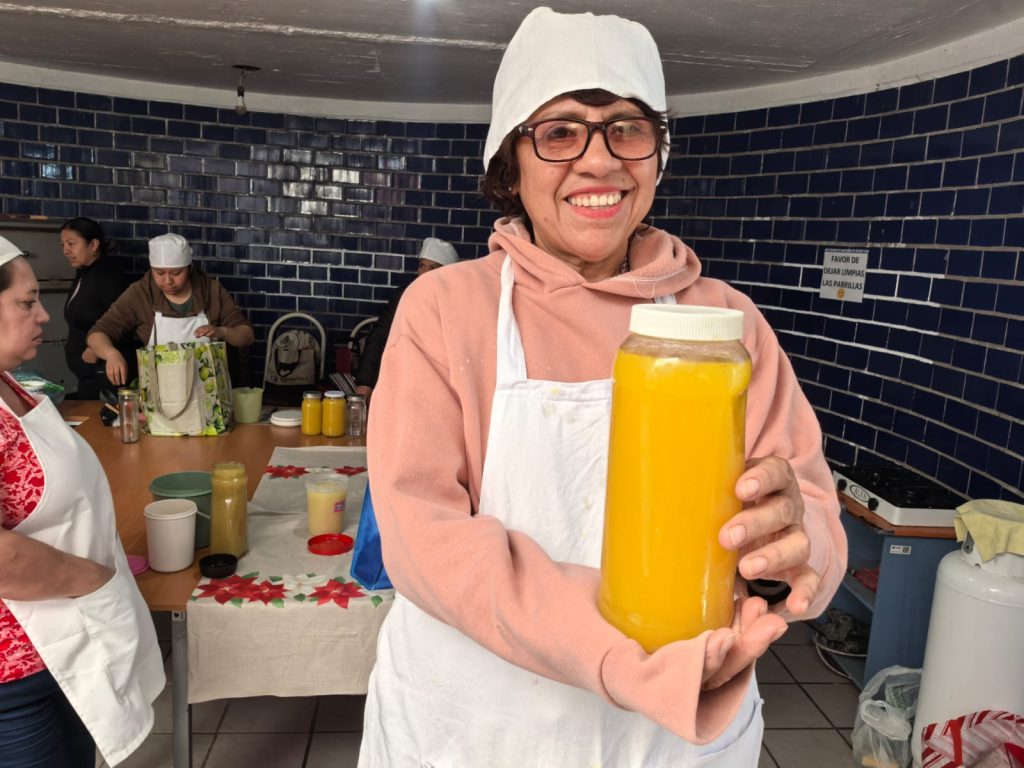 Violeta Barias Márquez, otra de las beneficiarias, también agradeció la capacitación recibida, ya que eso le permite aprender una actividad productiva con lo que genera ahorros pues varios productos de consumo diario en su familia los elabora ella misma.