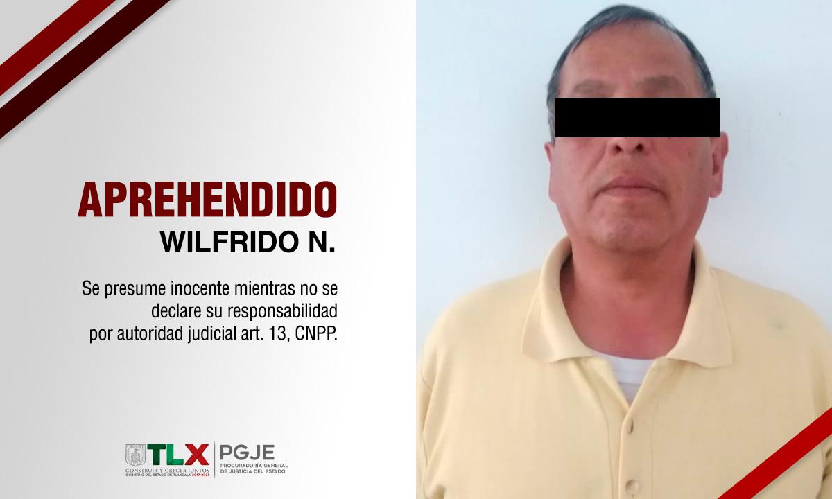 Tlaxcala, Tlax.-Una Carpeta de Investigación iniciada por la Procuraduría General de Justicia del Estado (PGJE) derivó en el cumplimiento de una orden de aprehensión en contra de Wilfrido N., por el delito de violación en agravio de una menor de edad.