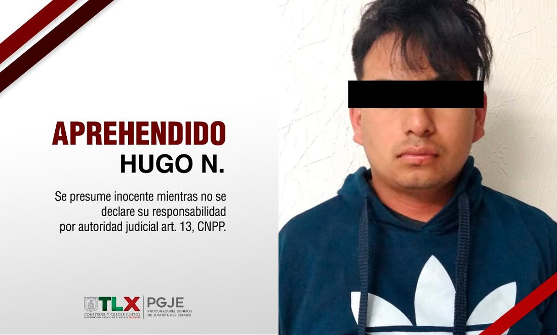 Tlaxcala, Tlax.-Resultado de una investigación científica a cargo de los oficiales de la Policía de Investigación adscritos a la Procuraduría General de Justicia del Estado (PGJE) se logró identificar y aprehender a Hugo N., como probable responsable del delito de violación ocurrida en 2017.
