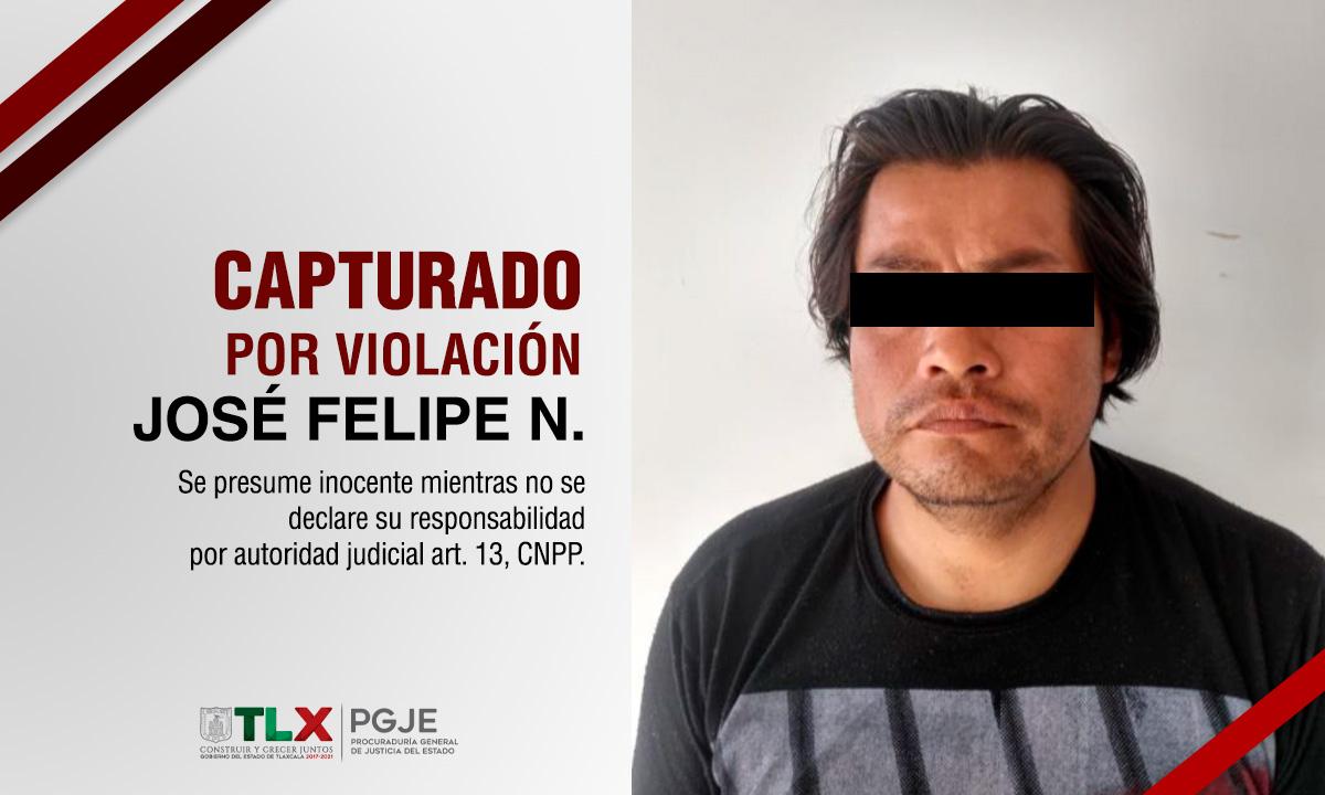 La Procuraduría General de Justicia del Estado (PGJE) a través de la Policía de Investigación, logró la captura de José Felipe N., quien contaba con una orden de aprehensión por el delito de violación en agravio de su hija.