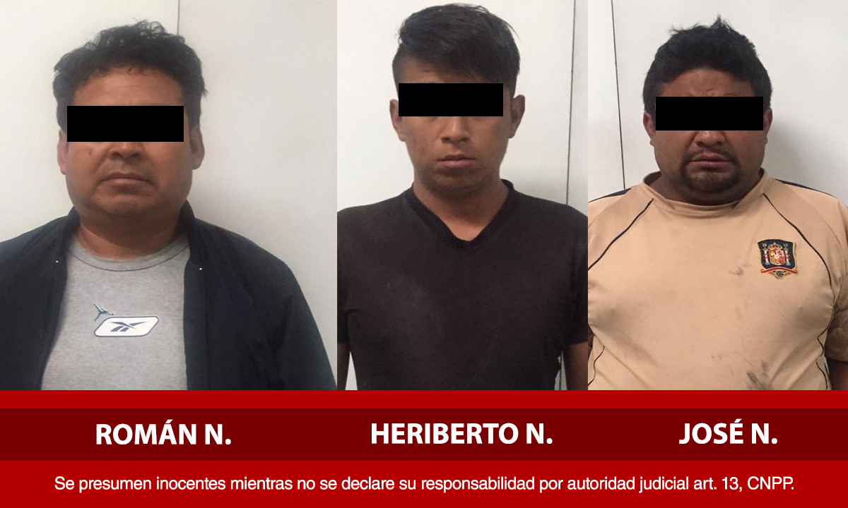 Por estos hechos, los oficiales procedieron al aseguramiento de José de Jesús N., Heriberto N., y Román N., quienes fueron puestos a disposición del Agente del Ministerio Público de la Mesa Especializada en Robo de Vehículos y Transporte en Carretera, por los delitos de posesión de vehículo con reporte de robo y encubrimiento por receptación.
