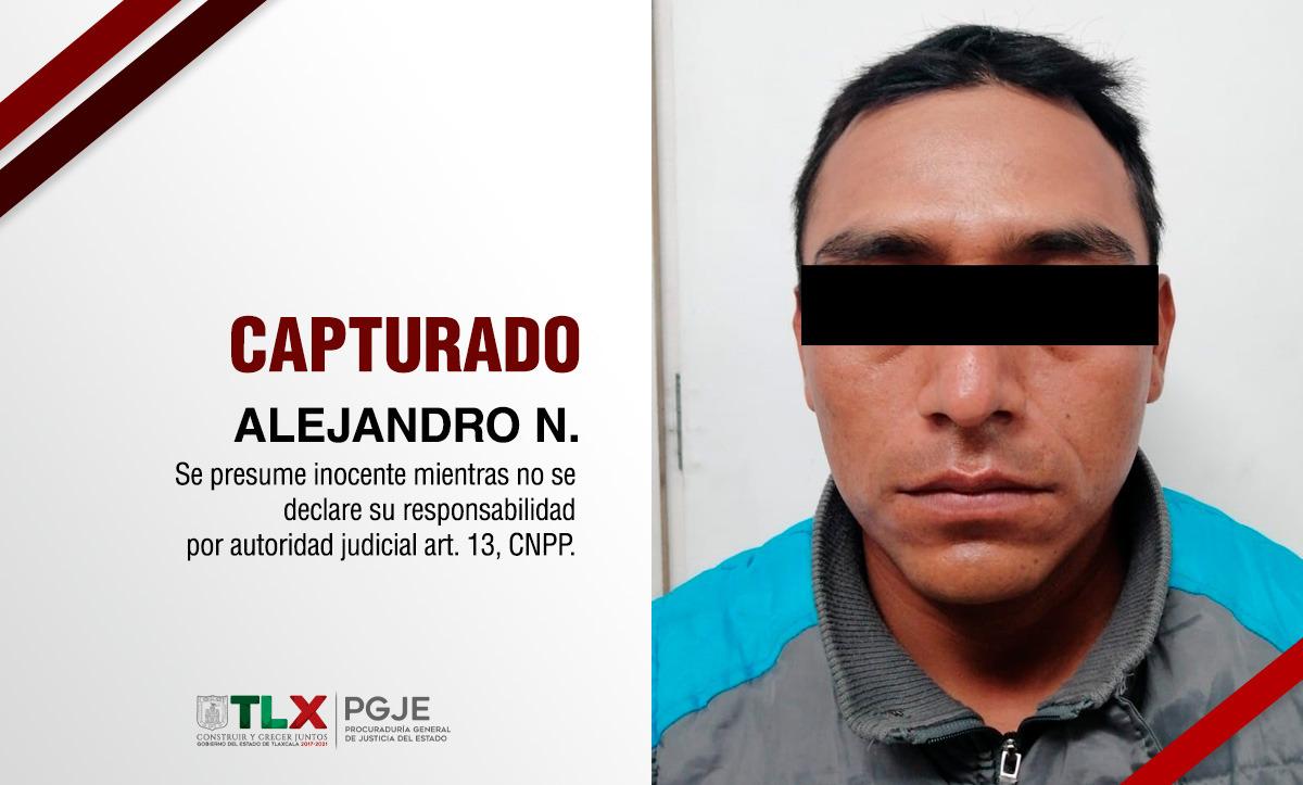 Tlaxcala, Tlax.-El trabajo coordinado entre la Procuraduría General de Justicia del Estado (PGJE) y la Fiscalía General del Estado de Puebla (FGE), permitió la captura de Alejandro N., quien se encuentra involucrado dentro de una causa penal en la entidad vecina por el delito de robo agravado.