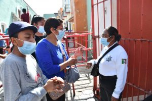 –Elementos de la Dirección de Seguridad Pública de Huamantla entregan información y asesoría a los visitantes.