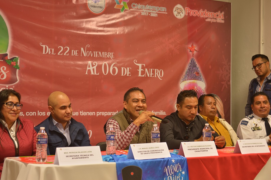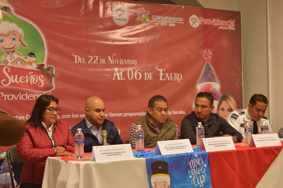 Chiautempan, Tlax.- El alcalde de Chiautempan, Héctor Domínguez Rugerio y el Grupo Textil Providencia, llevaron a cabo la presentación del Programa denominado “Villa de los Sueños” que de manera anual se efectúa en el municipio con motivo de las fiestas decembrinas.