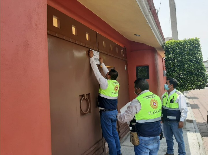 En la inspección, se identificó que el espacio localizado en la colonia Emiliano Zapata, municipio de Panotla, no cuenta con permisos para operar como salón social, por lo que se procedió a la clausura del inmueble.