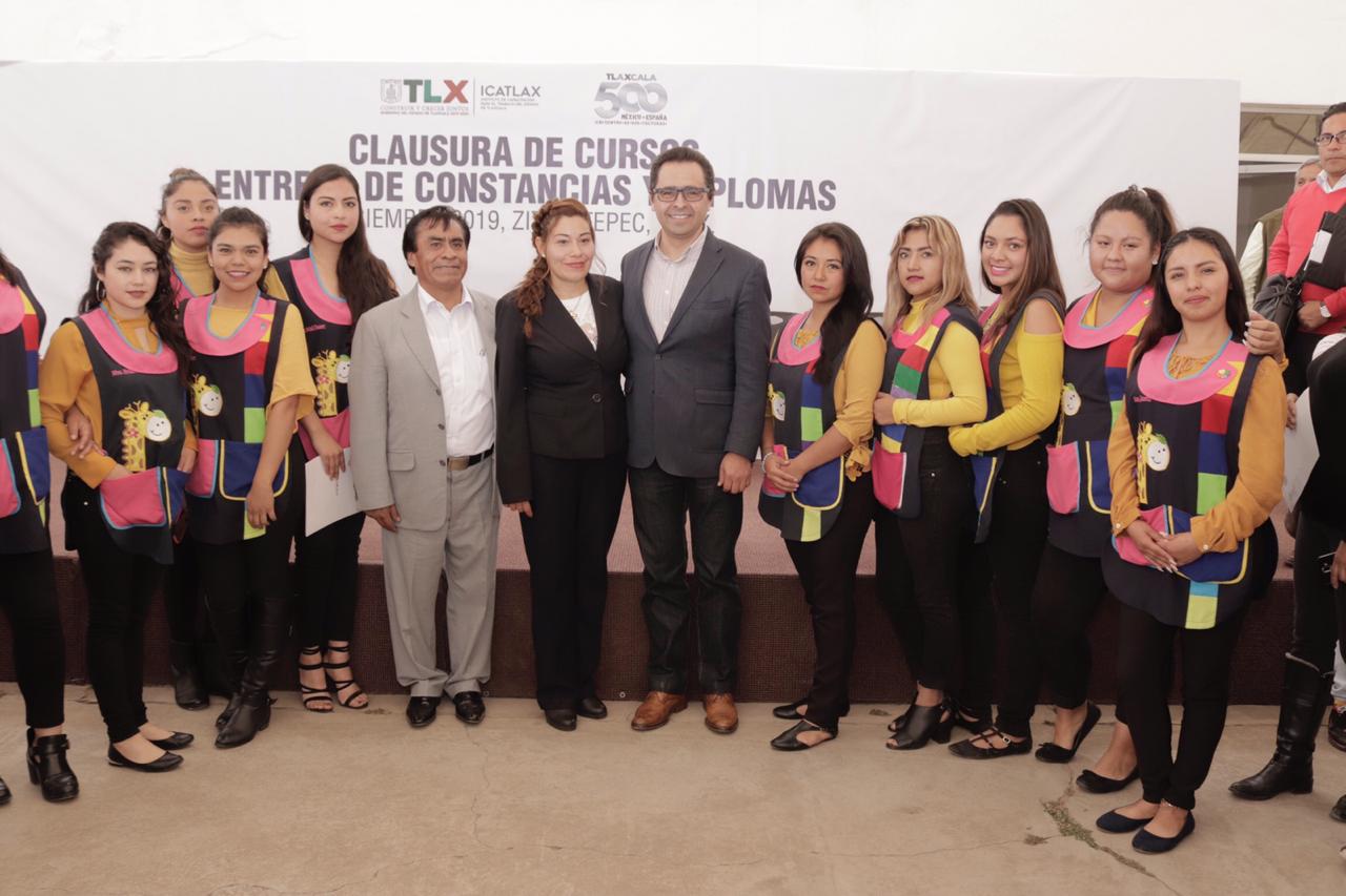 Tlaxcala, Tlax.-El Director General del Instituto de Capacitación para el Trabajo del Estado de Tlaxcala (Icatlax), Manuel Camacho Higareda, clausuró 29 cursos impartidos por la unidad de Zitlaltepec, los cuales beneficiaron a 404 personas de esta zona de la entidad.