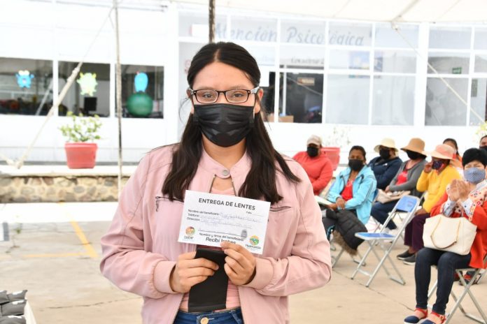 Huamantla,Tlax. -Con el propósito de elevar la calidad de vida de las personas con algún grado de debilidad visual, el H. Ayuntamiento de Huamantla, a través del Sistema Municipal para el Desarrollo Integral de la Familia (SMDIF) Huamantla, hizo entrega de más de 120 lentes a beneficiarios del programa “DIF en tu Comunidad”.