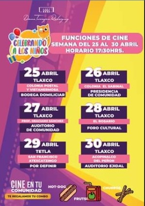 Tlaxcala,Tlax.- A escasos días de la celebración nacional del día del niño, la diputada local por el distrito II, Diana Torrejón Rodríguez, dio a conocer la campaña “Cine en tu comunidad” que pretende brindar una tarde de diversión a los pequeños de los municipios de Tlaxco y Tetla.
