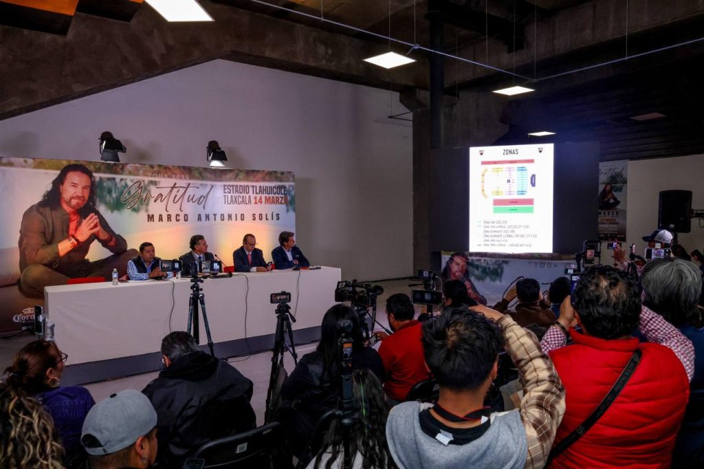 El cantante Marco Antonio Solís se presentará en Tlaxcala el próximo 14 de marzo, como parte de su Tour “Gratitud 2026”, en un concierto que tendrá carácter social. El evento se llevará a cabo en el Estadio Tlahuicole, donde se prevé una asistencia aproximada de 15 mil personas.