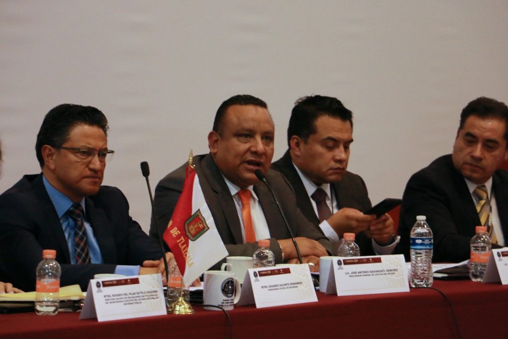 Durante una plática que sostuvo el titular de la PGJE, José Antonio Aquiahuatl Sánchez, durante los trabajos de la Tercera Sesión de la Conferencia Estatal de Directores de Seguridad Pública Municipal, reconoció que se han aportado herramientas suficientes que permiten la suma de esfuerzos entre los diferentes niveles de gobierno, generando así estrategias para el combate a la delincuencia.