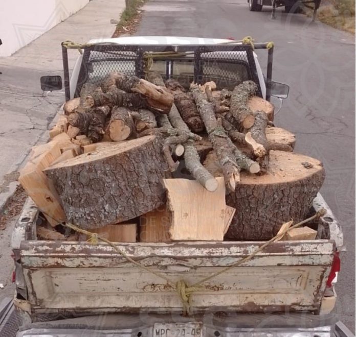 -Aseguró a una persona con una camioneta cargada de leña en rollo y raja; así como una motosierra.