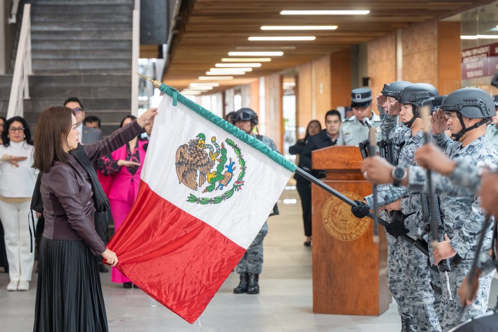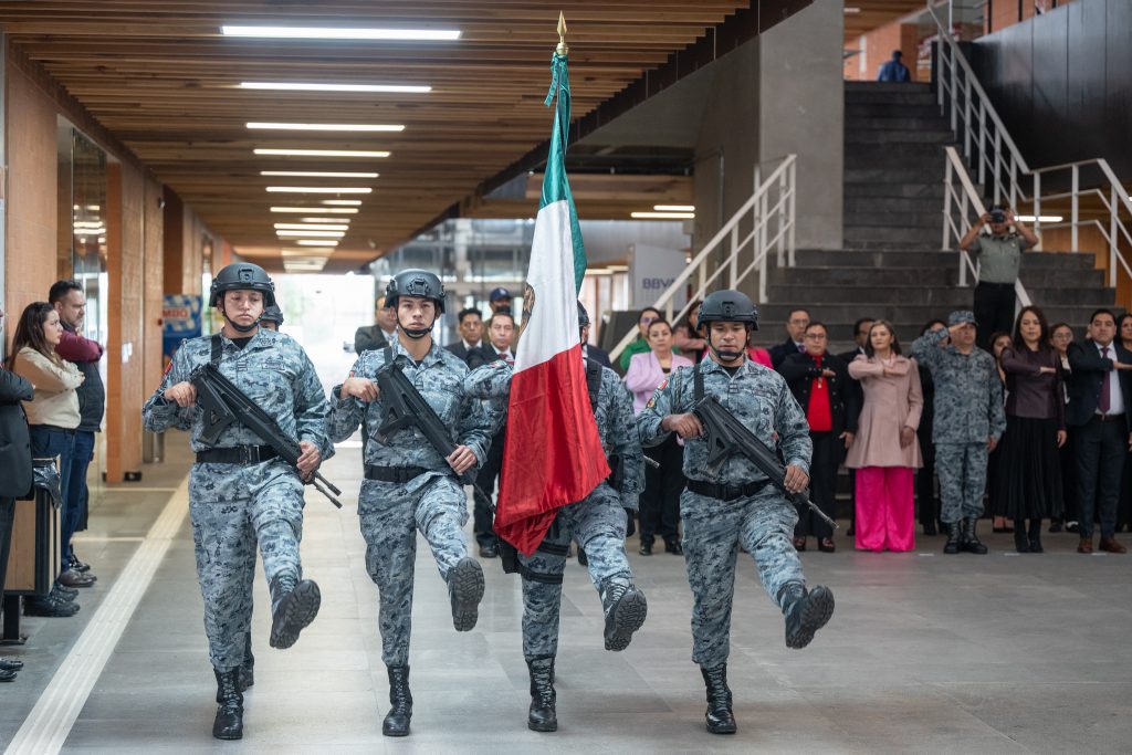 La presidenta del Poder Judicial, Magistrada Fanny Margarina Amador Montes, realizó el honroso acto de desfundar la Bandera Nacional, la cual fue escoltada por la Guardia Nacional del Estado de Tlaxcala y acompañada por la escolta de la Secretaría de Seguridad Ciudadana, que portó la bandera del Estado.
