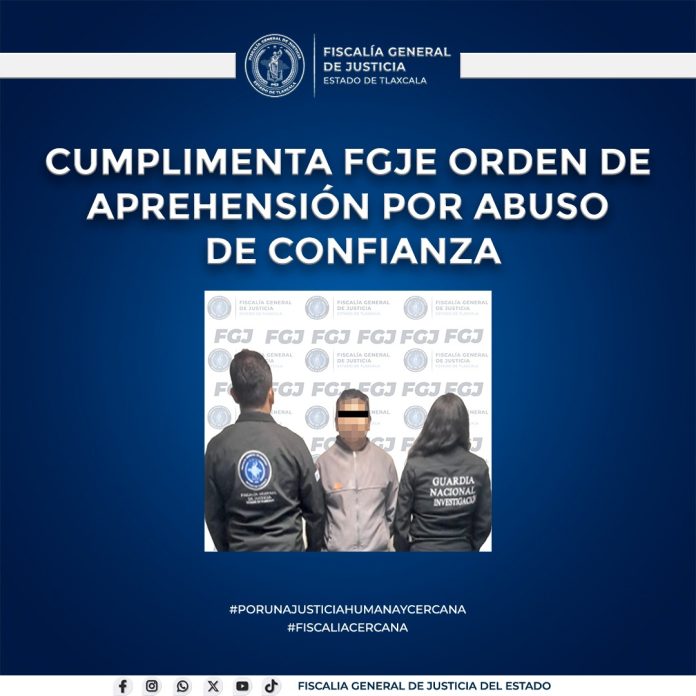 La Policía de Investigación de la Fiscalía General de Justicia del Estado (FGJE) cumplimentó una orden de aprehensión en contra de Casimiro N., por su probable participación en el delito de abuso de confianza.