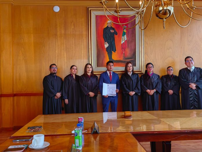 La designación se llevó a cabo durante una sesión ordinaria del Pleno del Tribunal y del Consejo de la Judicatura, encabezada por la magistrada Fanny Margarita Amador Montes, en la que se realizó la toma de protesta de diversos profesionales del derecho que asumirán responsabilidades en juzgados municipales de la entidad.