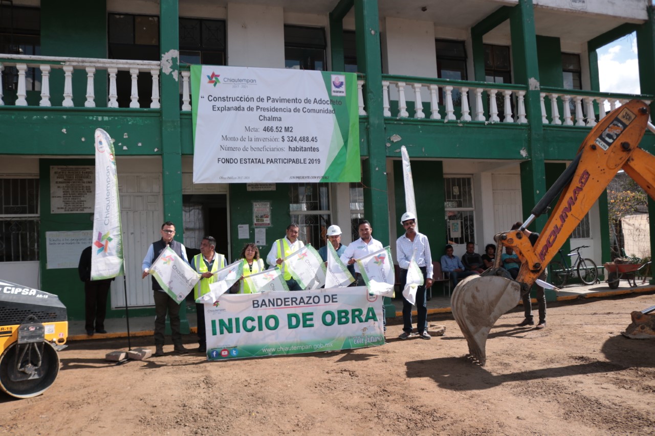 Chiautempan, Tlax.-El Presidente Municipal Héctor Domínguez Rugerio dio el banderazo de inicio a las obras de Rehabilitación de Red para Drenaje Sanitario en la Calle 16 de Septiembre perteneciente a la Comunidad de Cuahuixmatlac, así como el inicio de la construcción de Pavimento de Adocreto en la explanada de la Presidencia de Comunidad de Chalma.