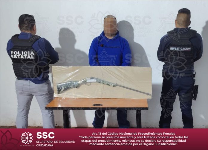 Como resultado de una denuncia ciudadana, elementos de la Secretaría de Seguridad Ciudadana (SSC) detuvieron a Juan Antonio N., por el presunto delito de portación ilegal de arma de fuego en el municipio de Yauhquemehcan.