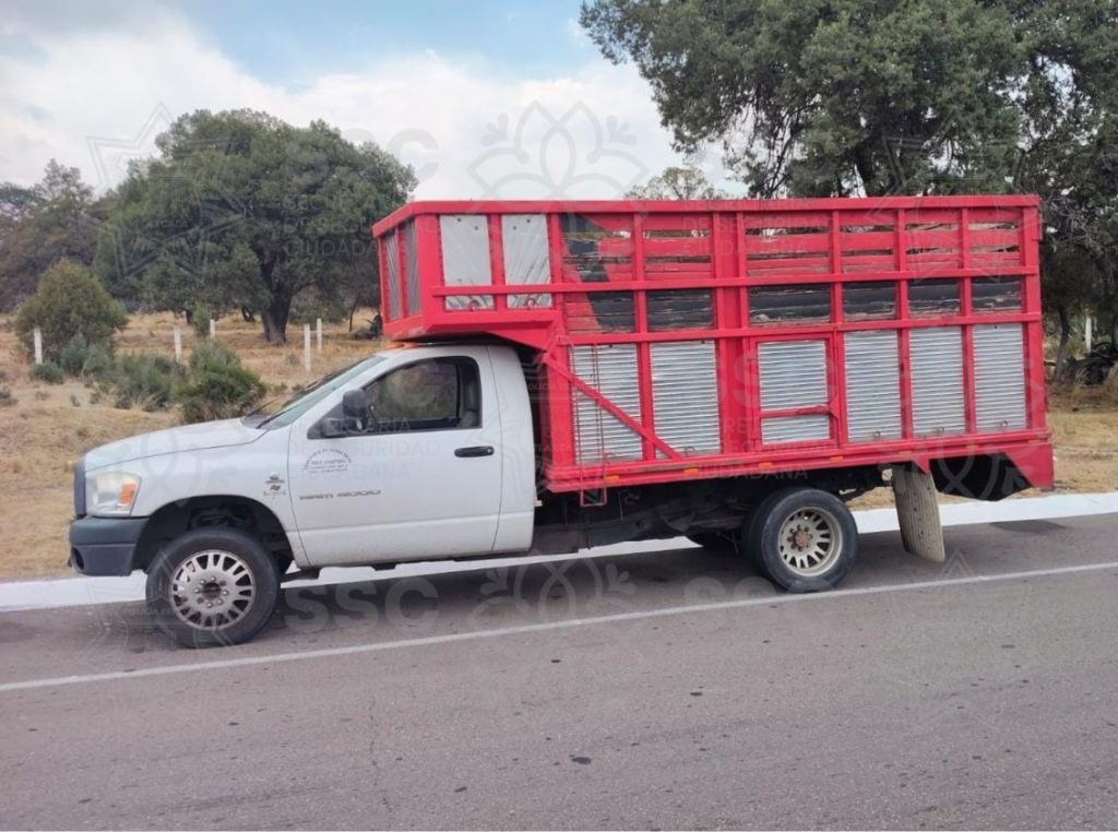Durante el operativo, los oficiales observaron una camioneta marca Dodge, tipo Ram 400, con placas del estado de Tlaxcala, la cual transportaba contenedores de gran capacidad, lo que llamó su atención y motivó una revisión preventiva conforme a los protocolos de seguridad establecidos.