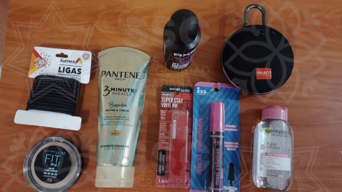 Es así que los efectivos arribaron al lugar, en el que confirmaron que una persona identificada como Dulce Verónica N., de 24 años, tenía entre sus pertenencias una bocina multimedia, así como un acondicionador para cabello, un labial líquido, agua micelar, un desodorante, polvo de maquillaje, máscara para pestañas y un paquete de ligas para cabello.