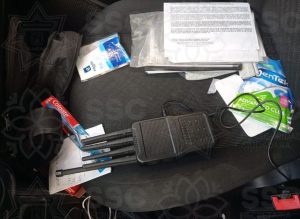 -La unidad y un masculino fueron asegurados, junto con un inhibidor de señal y un vehículo, supuestamente involucrado en el ilícito.