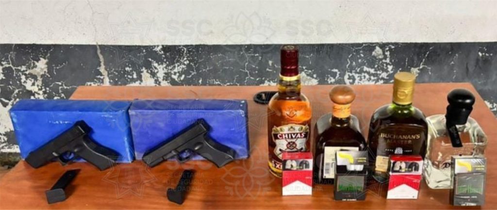 De inmediato, elementos de la SSC implementaron un operativo de búsqueda y localización, logrando ubicar a tres personas que coincidían con las características descritas por la denunciante. Ante esta situación, procedieron a entrevistarlos; sin embargo, los sujetos mostraron una actitud evasiva, por lo que se les realizó una revisión preventiva. Entre sus pertenencias se encontraron diversos artículos cuya posesión no pudieron acreditar, así como dos objetos aptos para agredir, específicamente réplicas de arma de fuego.