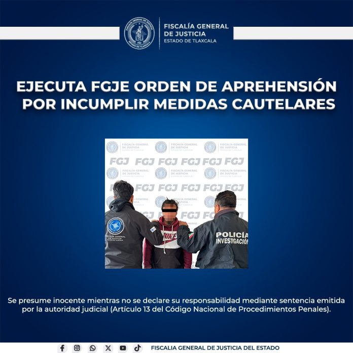 La Policía de Investigación realizó las labores de búsqueda, y el imputado fue aprehendido en el municipio de Zacatelco, donde se le informaron los derechos que le asisten como persona detenida, así como el motivo de su detención.