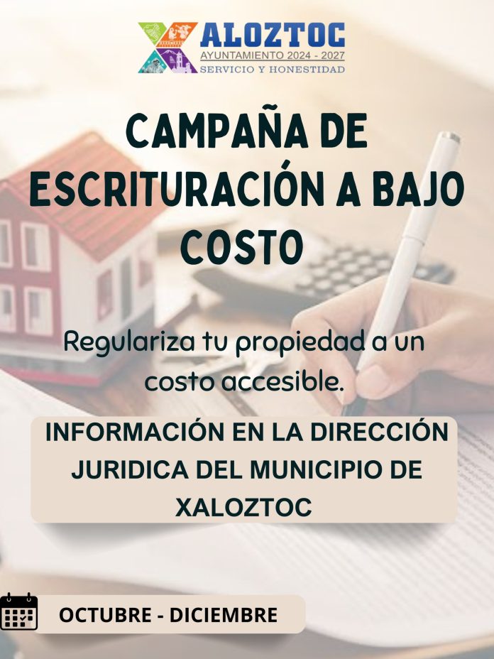 Xaloztoc, Tlax. – Con el objetivo de fortalecer la seguridad patrimonial de las familias del municipio, el Gobierno Municipal de Xaloztoc puso en marcha la Campaña de Escrituración a Bajo Costo, una iniciativa que busca facilitar la regularización de propiedades a través de un proceso accesible y con acompañamiento legal.