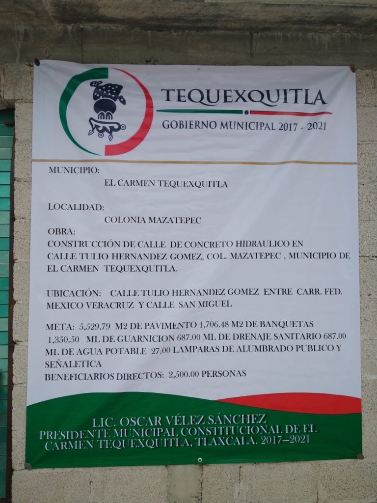 Tequexquitla, Tlax.-Con la presencia de autoridades municipales y vecinos de la zona, el alcalde Óscar Vélez Sánchez inauguró la calle Tulio Hernández Gómez en la Colonia de Mazatepec con el objetivo de combatir el rezago social, que la imagen del municipio prospere así como dar a conocerlo.
